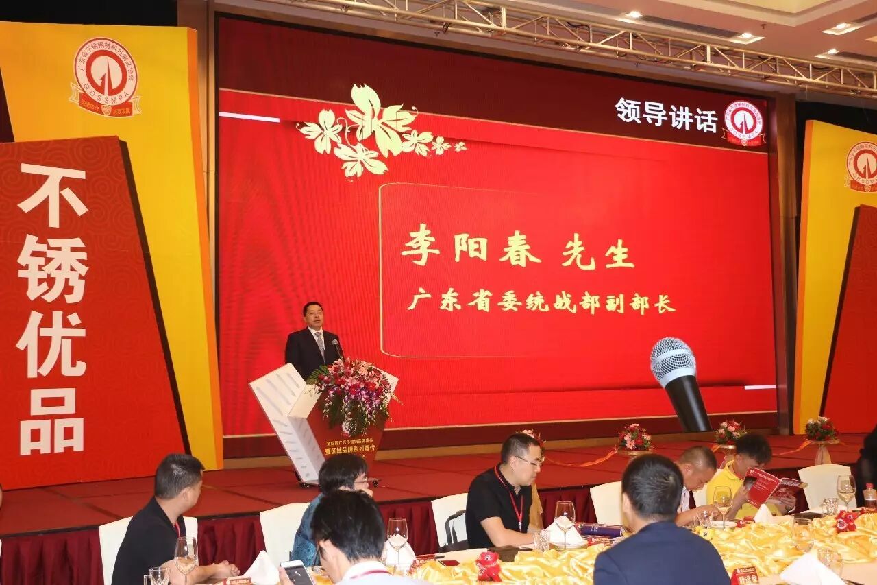中共廣東省委統戰部副部長李陽春、廣東省工商聯黨組成員、專職副主席張宏斌蒞臨指導;廣東省委統戰部光彩事業指導中心主任鐘威、廣東檢驗檢疫局技術中心金屬材料重點實驗室主任李成明、佛山市工商局副局長葉奕茂、佛山市工商聯副主席陳立堅、佛山市貿促會調研員鄧向文、陽江市經信局副局長敖道象等應邀出席;我會會長吳偉斌、常務副會長李儒昌、陳培華、監事長邢明亮、副會長葉建波、張紅艷、梁盛基、彭永紅、張曉敏、李金武、鄧偉健、鄧運如、林樹燦、陳華華、陳智輝、陳偉彬、譚永煉、彭初君、王占有、盧漢明、袁偉明、副會長王文輝代表李秀、孫峰代表彭文浩、肖元裕代表司徒仕鑾、李彥青代表魏崢與來自佛山、廣州、揭陽、肇慶、茂名等地的會員單位代表210多人出席。中央電視臺《品質》欄目、廣東廣播電視臺新聞頻道、《名優博覽》欄目、《品牌傳奇》欄目等媒體應邀到會采訪?;顒佑晌視B殘绦懈睍L兼秘書長林澤榆主持。