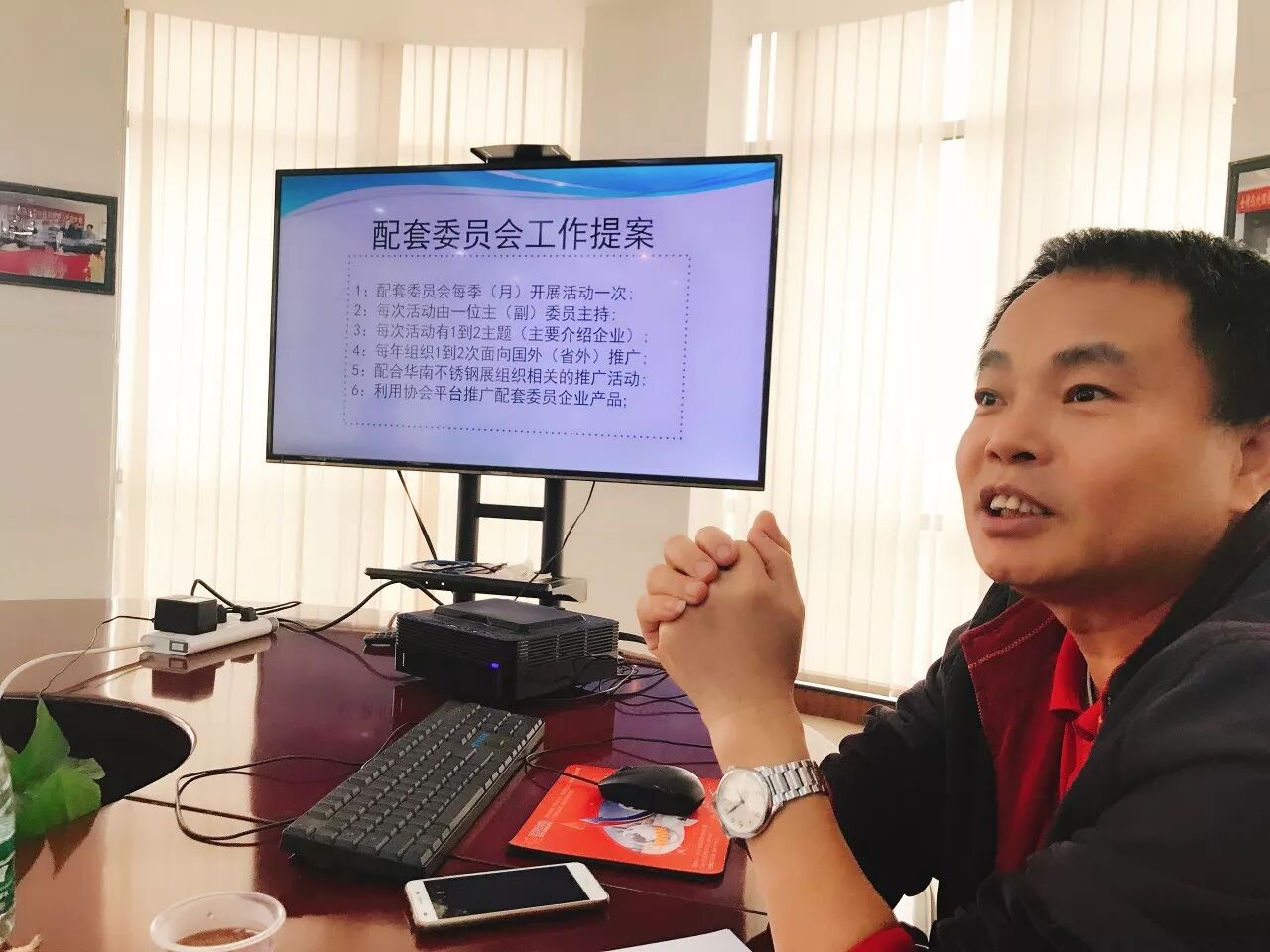 會上,王桂茂主任提出了2018年配套委員會的主要工作計劃建議,包括開展活動次數、主持人員、活動主題、組團拓展海外市場、積極配合協會主辦的華南不銹鋼展覽會并開展相關推廣活動、利用協會平臺推廣配套委員會企業產品等計劃與設想。