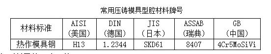 壓鑄模具型腔材料要求具有較高的冷熱疲勞抗力、良好的斷裂韌性及熱穩定性。