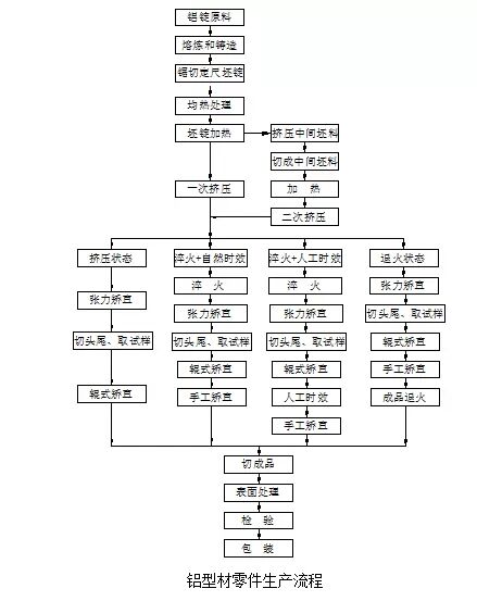 鋁型材成型加工中的主要工序是擠壓,其它工序與供貨狀態有關。