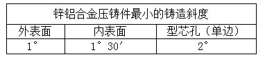 鋅鋁合金壓鑄件的一般小鑄造斜度如下表示: