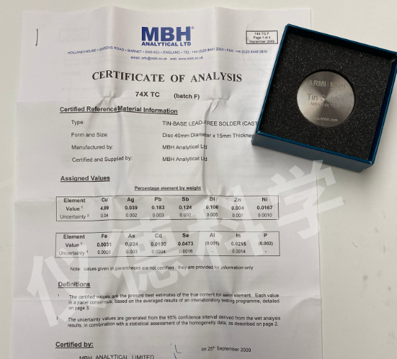 廣州儀德精密科學儀器股份有限公司標樣部專業提供全球著名光譜標準樣品,主要廠家有美國,英國,法國,德國,瑞士,波蘭,日本,加拿大等國優質光譜標樣,具權威性認證,帶認證證書,周期快現貨多,歡迎前來咨詢。標樣類別有:冶金標樣、有色金屬標準樣品、碳鋼標樣、中低合金鋼標樣、高合金鋼標樣、高溫合金標樣、精密合金標樣、銅合金標樣、鋁合金標樣、鉛錫合金標樣、碳素鋼標樣、比色鋼標樣、焊條鋼標樣、CS專用鋼標樣、低合金鋼標樣、合金結構鋼標樣、彈簧鋼標樣、軸承鋼標樣、不銹鋼標樣、高錳鋼標樣、硅鋼標樣、工具鋼標樣、高溫合金鋼標樣、生鐵標樣、鑄鐵標樣、合金鑄鐵標樣、工業純鐵標樣、鐵合金標樣、中間合金標樣、鐵礦石標樣、燒結礦標樣、磁鐵礦標樣、耐火材料標樣、爐渣標樣、煤標樣、焦炭標樣、鋁合金標樣、鉛基合金標樣、工業硅標樣、銅合金標樣、純鐵標樣、鑄鐵光譜、碳鋼、中低合金不銹鋼、高溫合金光譜、高純金屬。另有礦石粘土棕剛玉碳化硅焦炭煤等非金屬標樣、光譜標樣金相圖譜及純錫助溶劑、硅鉬粉、礦石原材料、耐水材料、爐渣、焦炭、煤、鐵合金等。歡迎咨詢!